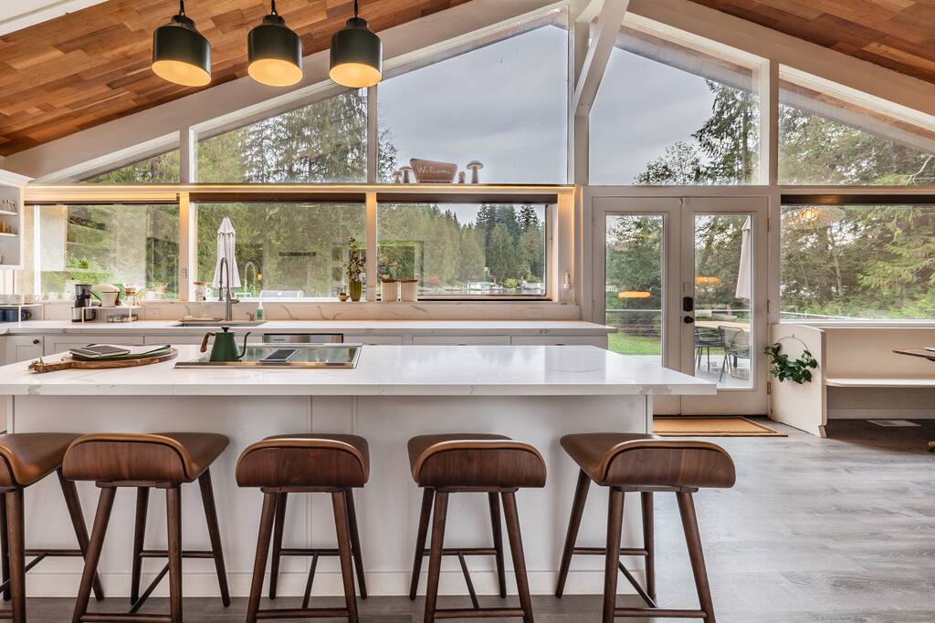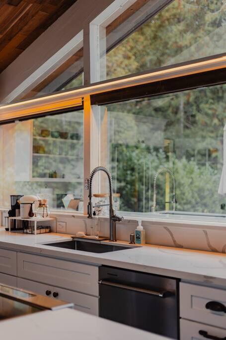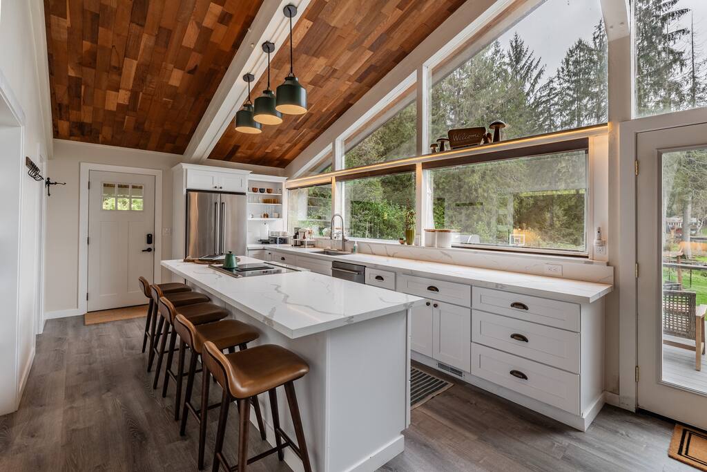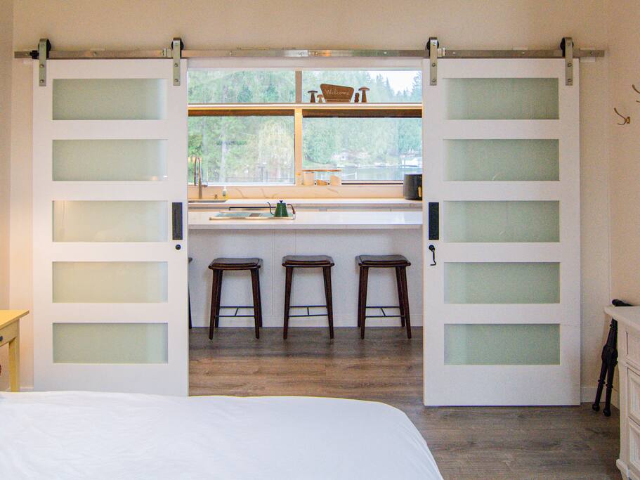 The upper bedroom does get early light through the windows so we suggest bringing eye masks. We would have added curtains here if we could, but due to the unique window design as well as the frosted glass on the double doors to the room, it just wasn't practical. The home has a three dog max and a fee of $75 per pet. Please enter your pet count along with your guest count when booking. Boating / Water-skiing notes: Water-skiing and motor boating is permitted on Lake Roesiger May 25th - September 25. Hours for waterskiing are from 10:30 am to 5:30 pm. Look up "Lake Roesiger Boating Regulations" for more information on lake rules Lake Roesiger Boat Launch: The boat launch is located on the south end of the lake just off of S lake Roesiger Rd on Middle Shore Rd. Backing your boat into the launch area can be a bit tight, but once there the launch angle is decent and easy to launch your boat. There is a small amount of parking near the launch, but the parking can often be full during busier times. You can leave your truck and trailer parked here for a couple hours, but the expectation is that you would park your trailer back at the house for longer uses. Navigating From Launch To House: The lake is made up of 3 distinct areas: the south lake, middle lake, & north lake. Generally, you will travel from the launch area to the northmost point of the lake. There are two areas to call out. As you travel through the middle lake, it can get pretty shallow in this area. Keep a close watch on the water depth and watch for underwater vegetation. Try to keep to the established path through the vegetation. The other key area is as you transition from middle lake to north lake, there is a narrow passageway that is marked with official raised posts. The water level can get pretty low through this point and there are some rocks to watch out for. It is recommended to raise your prop as much as you can here and go slow. Boat Lift Location: The boat lift is located on the right side of the dock when looking out onto the water and is near the deeper end of the dock. The control box is a white weatherproof enclosure which sits on the dock surface about midway. Boat Lift Operation: To raise or lower the boat lift, open the weather proof enclosure and put the on/off rocker switch into the "ON" position. To lower the lift, press and hold the "LOWER" rocker switch until the lift is in lowered to the desired position. To raise the lift, press and hold the "RAISE" rocker switch until the lift is raised to the desired position. Generally, the lift should be stored in the fully raised, over-center position. Once the lift is in the desired position, put the on/off rocker switch into the "OFF" position. Other Lift Notes: Try to center the boat on the lift side to side by getting help with a 2nd person to hold the boat as you hold the lift switch. Otherwise the boat will be leaning when it is lifted. One suggestion is to pause the lift just as the lift comes into contact with the boat hull. You may need to lower the lift briefly and recenter before raising it again.