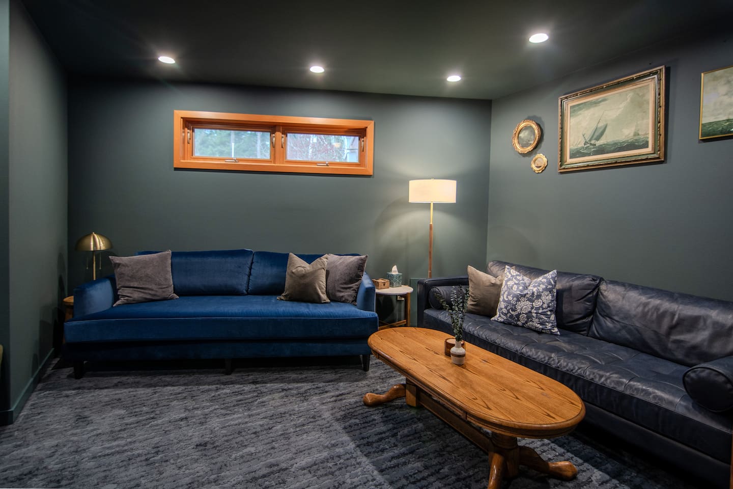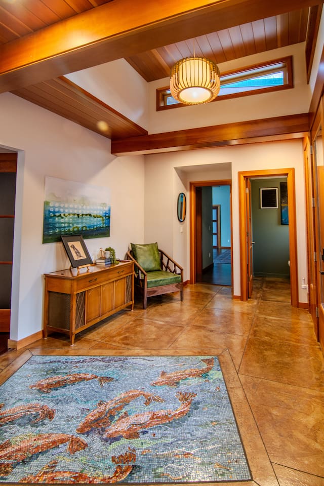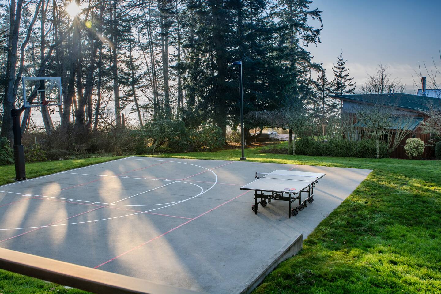 Please add your pet count along with your people count when you book. We do ask that when dogs are outside that they are kept on a leash and within the boundaries of the property. The neighbors have two small dogs secured by an invisible fence, and they’re understandably concerned about keeping their pups safe and comfortable. There is comfortable parking onsite for 5 vehicles, however about 7 vehicles can squeeze in with some creative parking. Access to the beach is a 15 minute walk through a quiet neighborhood down to Ledgewood Beach Park. There is a pathway at the southeast corner of the property leading to the ledgewood neighborhood. The sport court will shared with one other home starting in the September timeframe. We often get inquiries about hosting weddings at the property, but we are not currently able to do so. Additionally parties are not allowed. The 4th bedroom is just off of the main living room area. The bedroom wall separating the living room area is about 9' high, but does not go all the way to the ceiling so this room will have reduced sound privacy. The property is within the outer path of the Naval Airbase Jet training area. The jets typically practice Tuesday through Fridays, however they do not fly on weekends. They tend to fly at a distance a bit to the north, however they fly closer to the property in their way to the practice area and as they wrap up on their way out. The house itself has good sound isolation. Privacy disclosure: The property has security cameras on the exterior of the home only. There is a camera at the front entryway exterior and one overlooking the driveway and sport court.